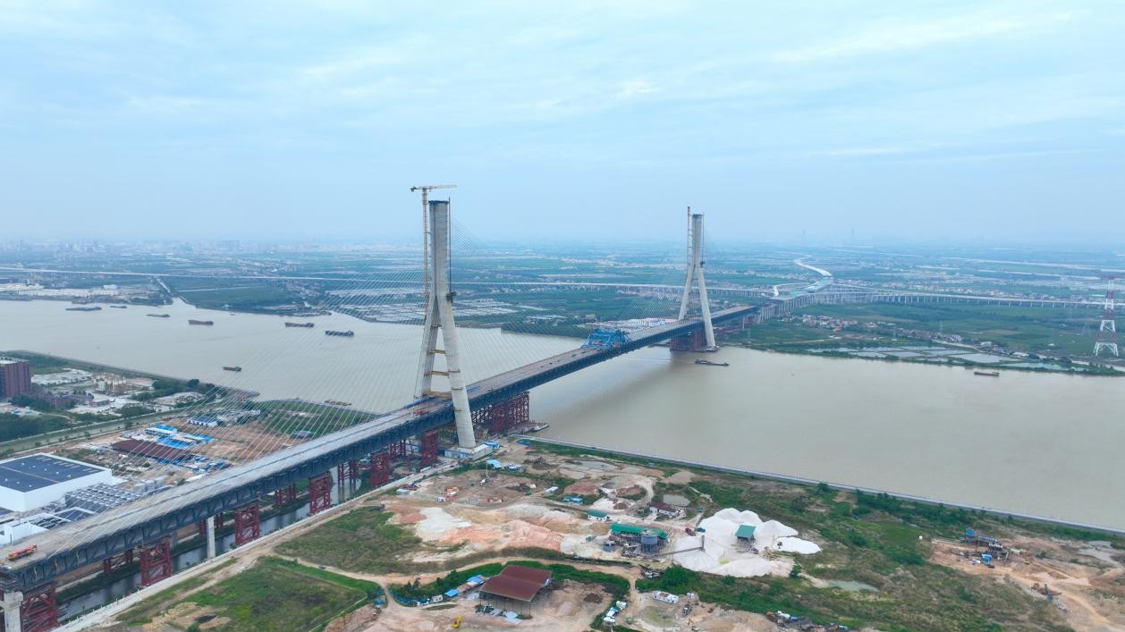 项目采用上下双层双向十六车道设计,上层为双向八车道高速公路,下层预留八车道空间,其桥面宽度和跨径,均处于世界双层钢桁架公路斜拉桥领先水平。