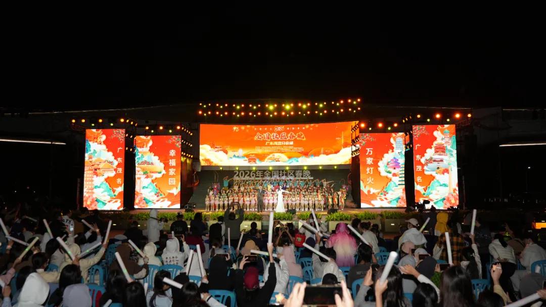 12月3日晚,以“万家灯火・幸福家园”为主题的2026全国社区春晚广东茂名分会场活动,在包茂高速柏桥服务区东区大舞台精彩上演。