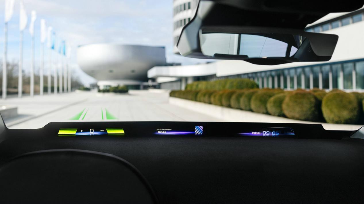 最引人注目的是,这款概念车搭载了业界领先的全新一代平视显示技术——BMW全景视域桥。BMW全景视域桥能够将信息投影到挡风玻璃下缘的深色涂层区域,该投影图像拥有出色的清晰度和色彩表现,并首次让所有乘客都能看到覆盖挡风玻璃整个宽度的信息。与驾驶相关的信息能够根据不同使用场景恰到好处地出现,让驾驶体验更加便捷。宝马作为车端HUD平视显示系统的开创者,20年来一直引领此项技术的发展,并始终完美承载了宝马“眼不离路,手不离方向盘”的安全驾驶理念。