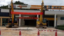 10月13日上午11时,随着两台挖掘机伸展机械臂对服务区建筑进行拆除作业,广东交通集团所属揭博高速棉洋服务区提质升级改造工程正式开工。
