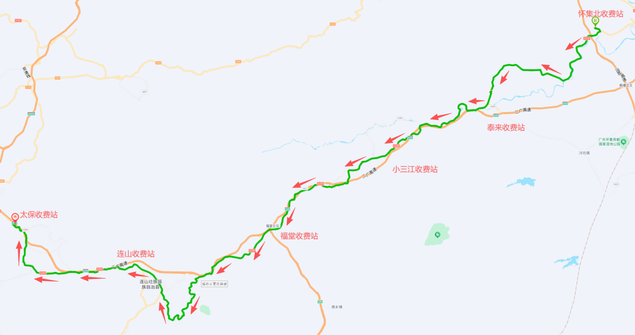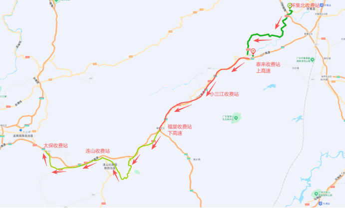 12月15日下午6时至12月25日下午6时,可从泰来站上高速、连山站下高速,绕行G234国道至太保站重新上高速。