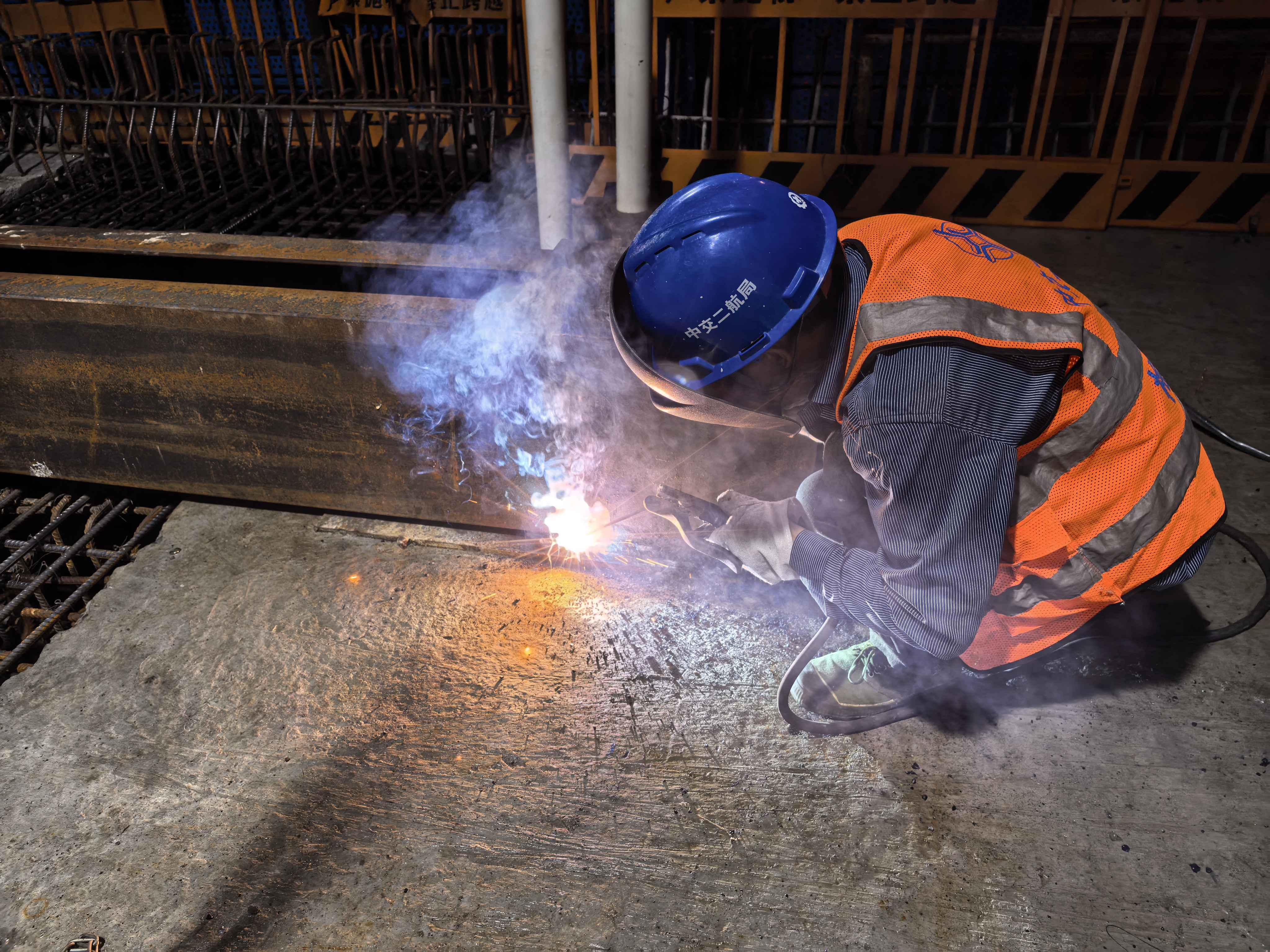 经过完备的前期准备和现场人员的精确调控,在合龙过程中,为预防合龙段混凝土开裂,项目团队通过充分论证,最终选定在气温较低、温差较小的夜间时段进行混凝土浇筑,有效保证了浇筑的质量。