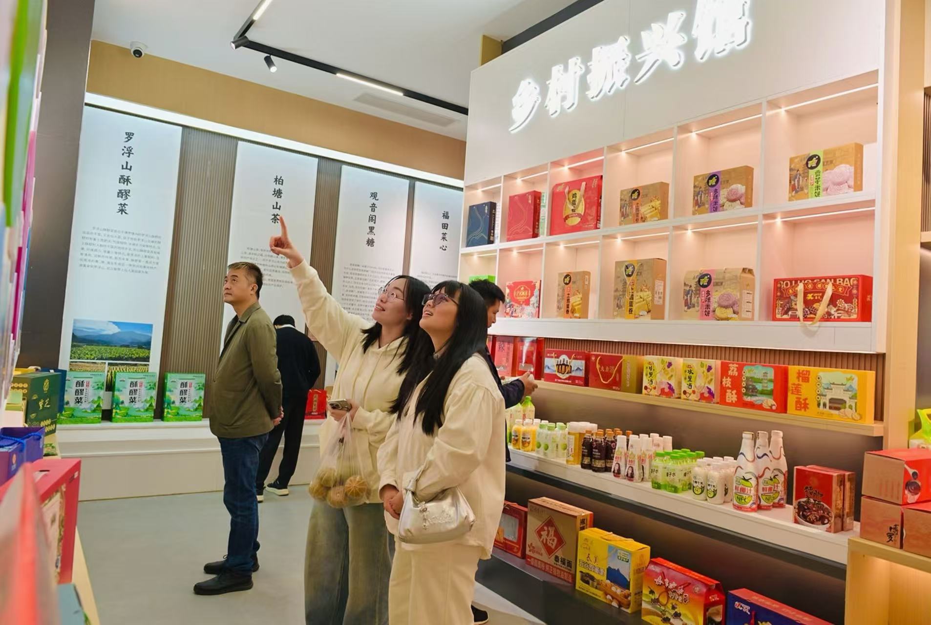 走进泰美服务区的乡村振兴馆,博罗花生、柏塘山茶等数十种名优特产整齐陈列,该馆以“博罗山水靓”为主题,展出的“物产地图”不仅介绍了博罗土特产,还推介了罗浮山、雷公峡等旅游景观。乡村振兴馆搭建起展示地方文化和农产品的新窗口,将惠州博罗特色“好物”带给过往司乘。