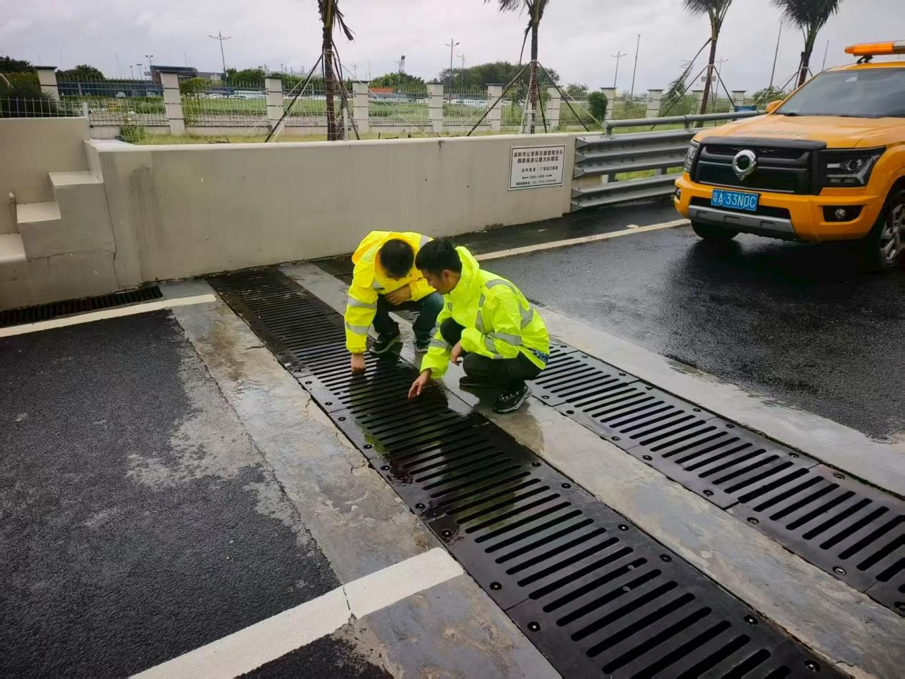 9月24日17时,随着台风影响减弱,深中通道迅速组织安全、路政、养护、数字化等部门人员到现场对全线进行排查,重点检查路面是否存在异常积水、沿线交通标志牌受损情况以及水马、防撞砂桶等临时安全设施状态。对被强风吹歪的车道标志标牌等设施,组织人员及时修复和加固,为接下来恢复通行做好准备。