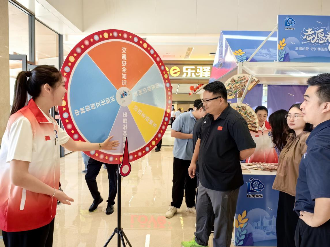 在开通活动现场,知识问答活动吸引了众多旅客参与。精心设计的知识问答转盘上涵盖了交通安全、国庆知识、客潮文化知识等方面的题目。过往司乘纷纷驻足抽取题目,认真思考作答,现场气氛热烈。