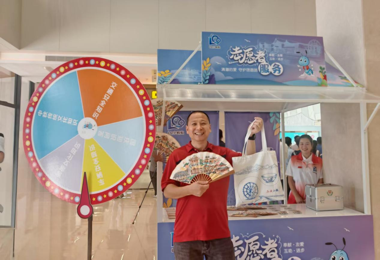 “本来只是在服务区歇脚,没想到现场有这么多精彩的活动。”来自广州的马先生拿着参与竞猜活动赢得的文创纪念品和水车服务区特色扇子,话语中满是惊喜。