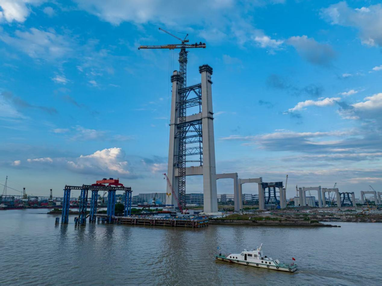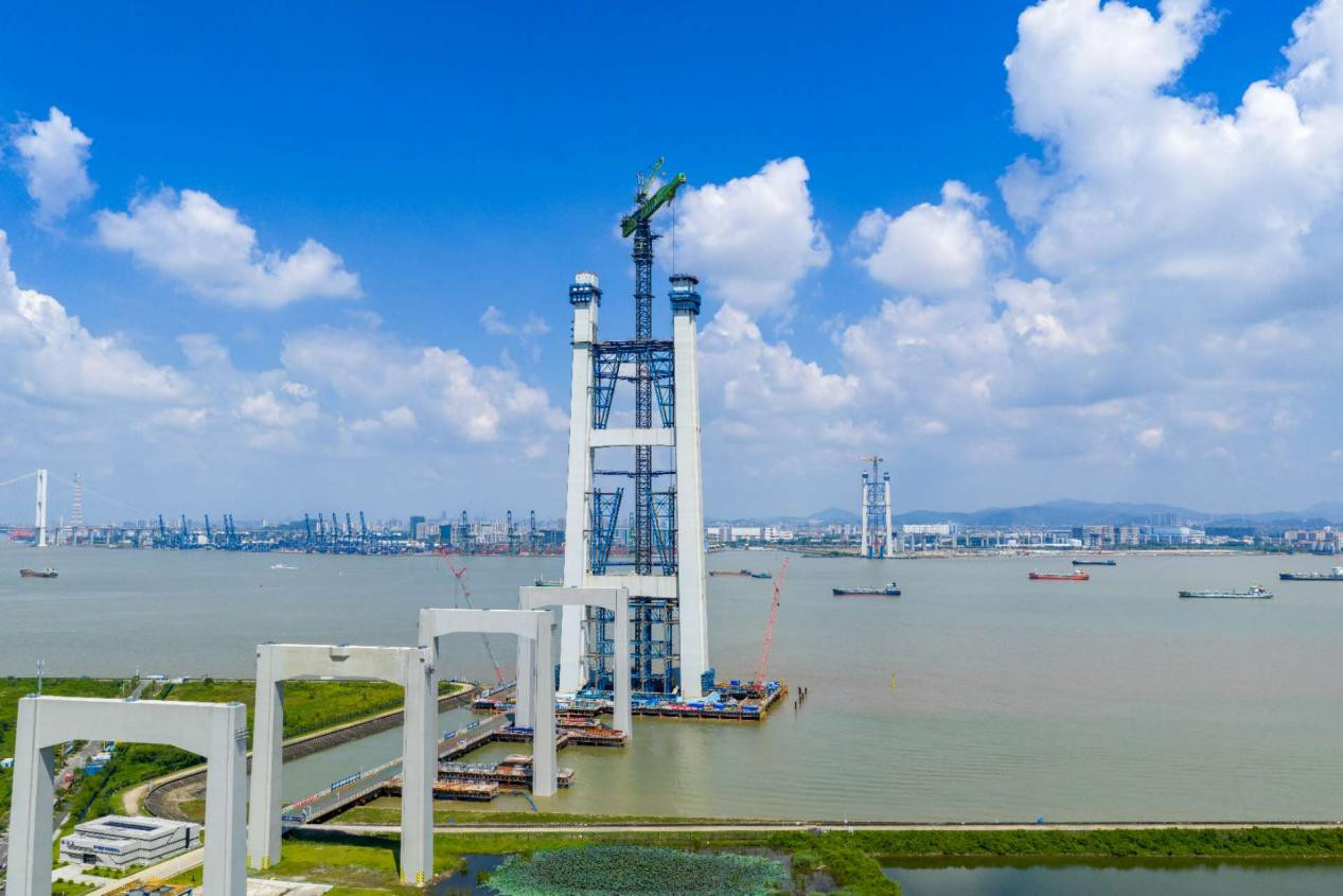狮子洋大桥建设高度突破200米(摄影:赵宇鹏)
