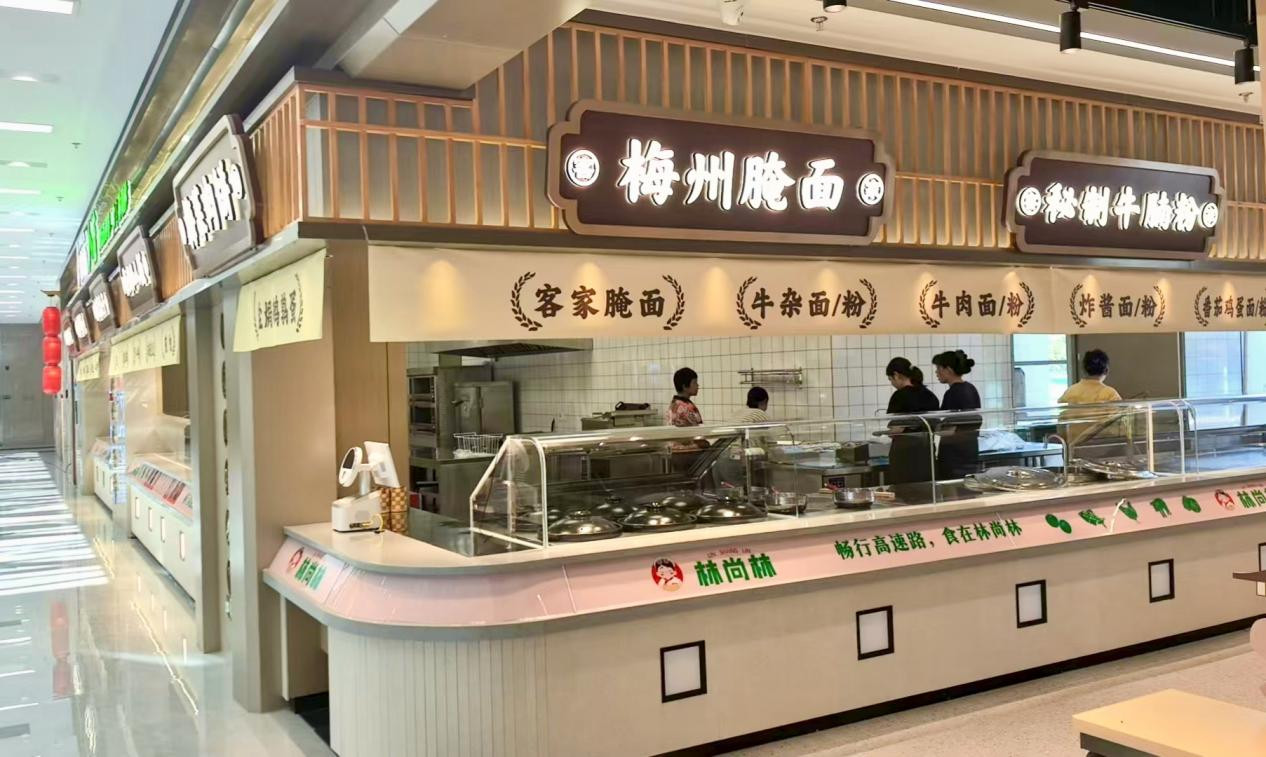 服务区内“林尚林”餐厅也以一众客潮美食助力打造“舌尖上的服务区”。东区餐厅提供了36种客潮特色美食,有客家糍粑、梅州腌面、仙人粄、梅菜肉饼、客家酿板等传统小吃,绝对能照顾到归家游子们的“家乡胃”。西区的小吃档同样丰富,潮汕牛肉丸、牛杂、粿条等地道美味让旅客一站吃遍潮汕风味。中秋期间,还特别推出潮汕朥饼,金黄酥脆,甜而不腻,寓意团圆美满。