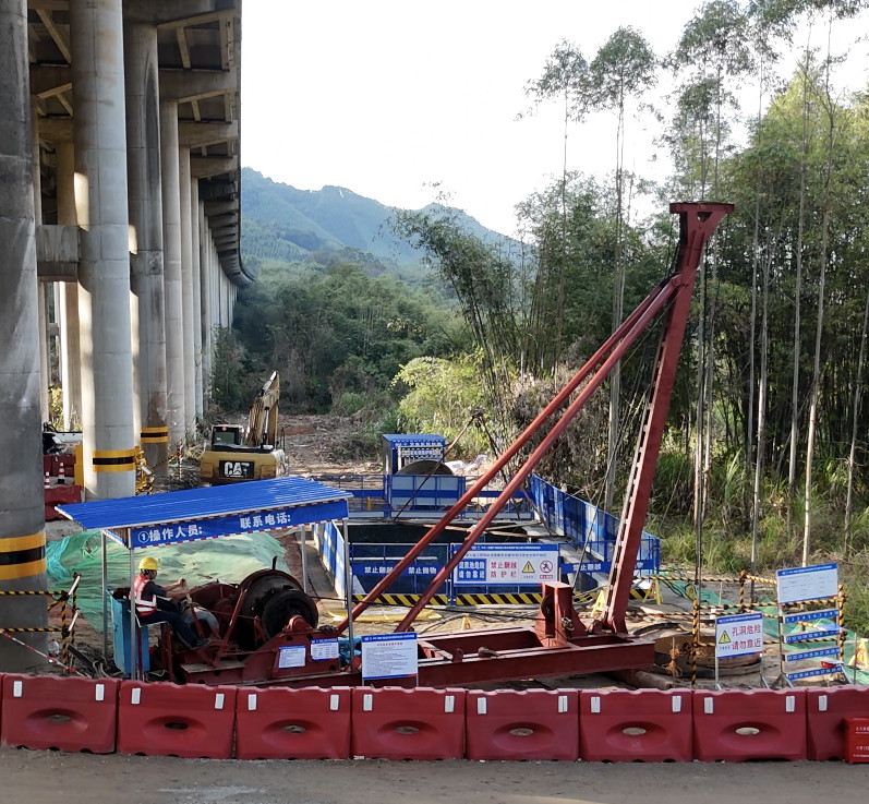 首根桩基位于项目先行用地范围内的华子山高架桥,由中交第一航务工程局承建,桥长约766米,共设计132根桩基。首钻桩基为左幅29-1#,桩径1.5米,桩长28米,为保证复杂地质条件下桩基的成孔质量与施工安全,采用冲击钻孔施工工艺。