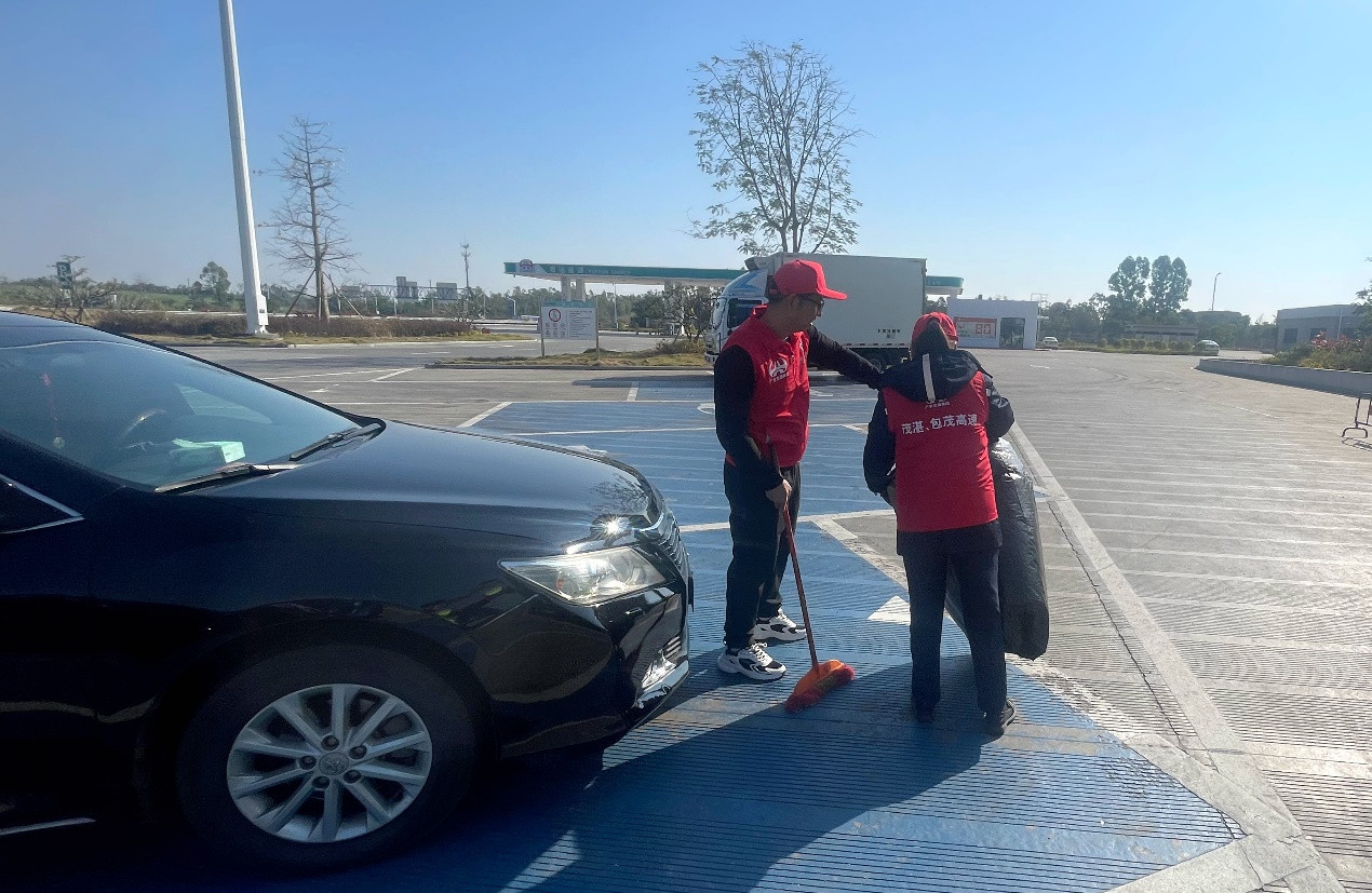 茂湛高速鳌头站志愿者在电白服务区开展“三清”行动。