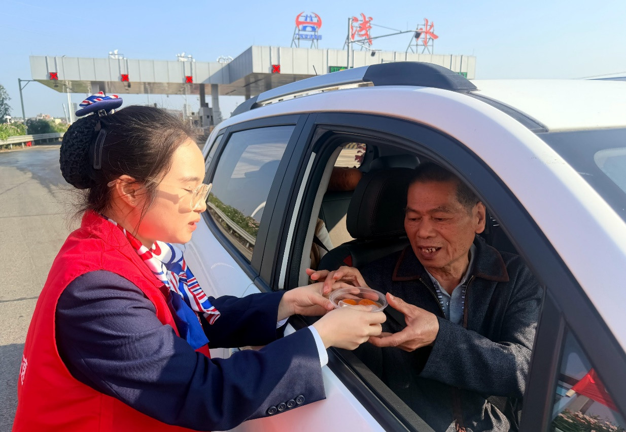 茂湛高速浅水站志愿者元旦节假日为途经司乘人员送上热腾腾、甜在心的柿子汤圆。