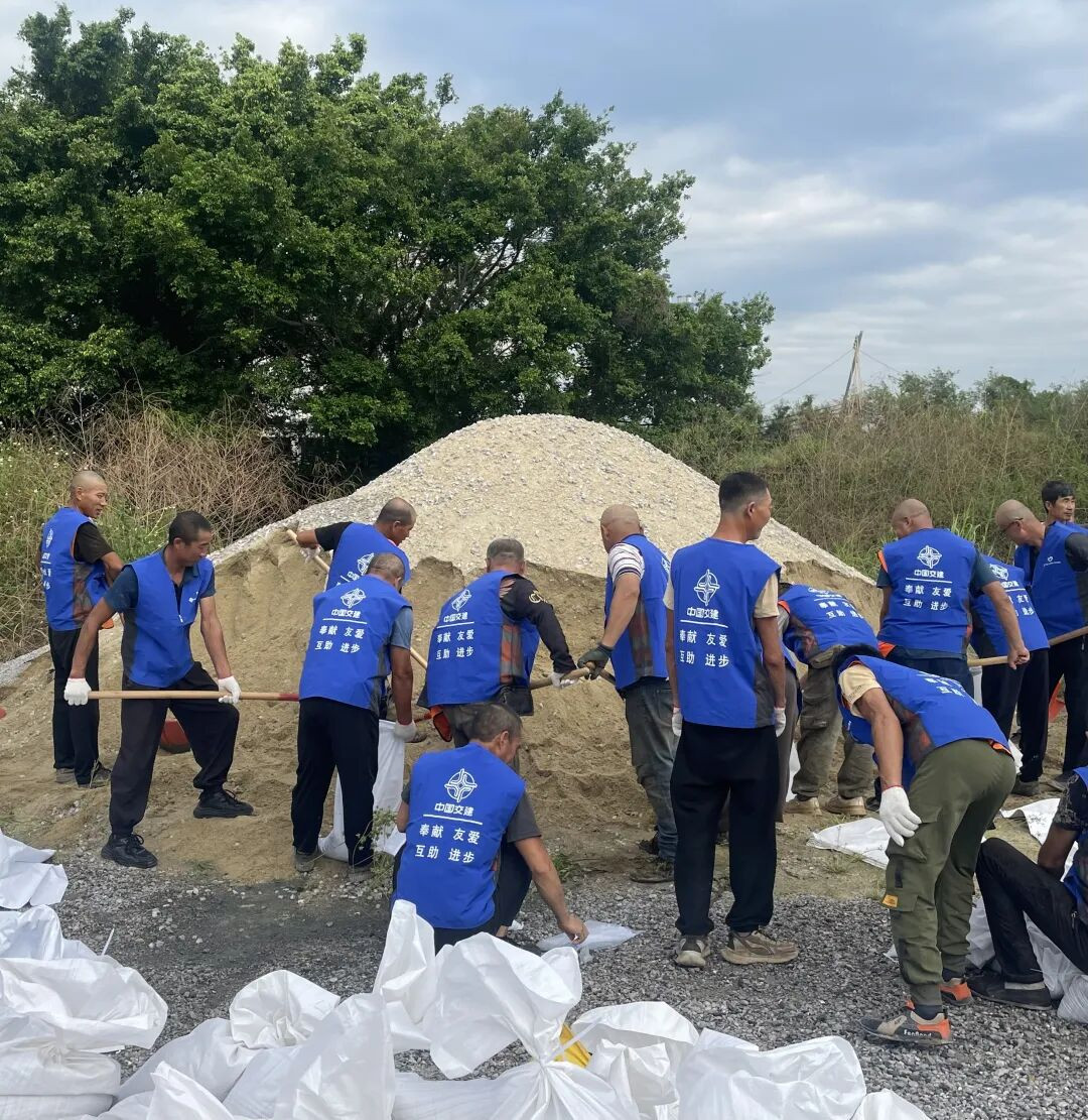 狮子洋通道T10标帮助周边村民开展装填沙袋作业(摄影:宋佳音)