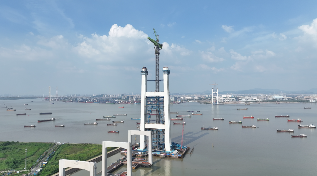 狮子洋大桥近期正进行桥塔建造,为进一步提高主桥主塔施工塔吊的抗风安全储备,结合台风登陆风速研判,项目要求负责主桥施工的T8、T9标段,紧急调派设备厂家专业团队到现场,协同施工团队对两台塔吊采取降低了塔吊在扶墙以上的自由悬臂高度、提升钩头至最高位,同时结合回转风标打开自由回转等措施,全方位、多维度保障塔吊安全度台。