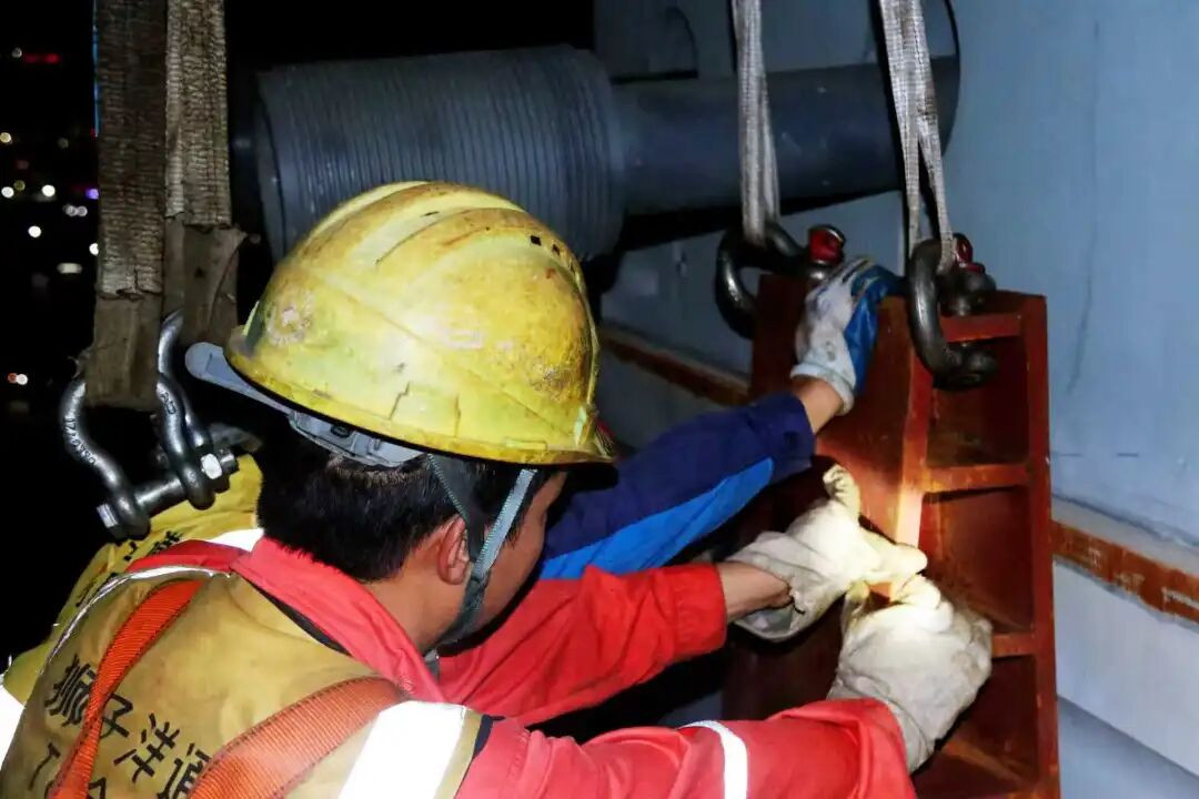 狮子洋通道T8标连夜紧急加固大桥横梁主动横撑(摄影:蒋西米)