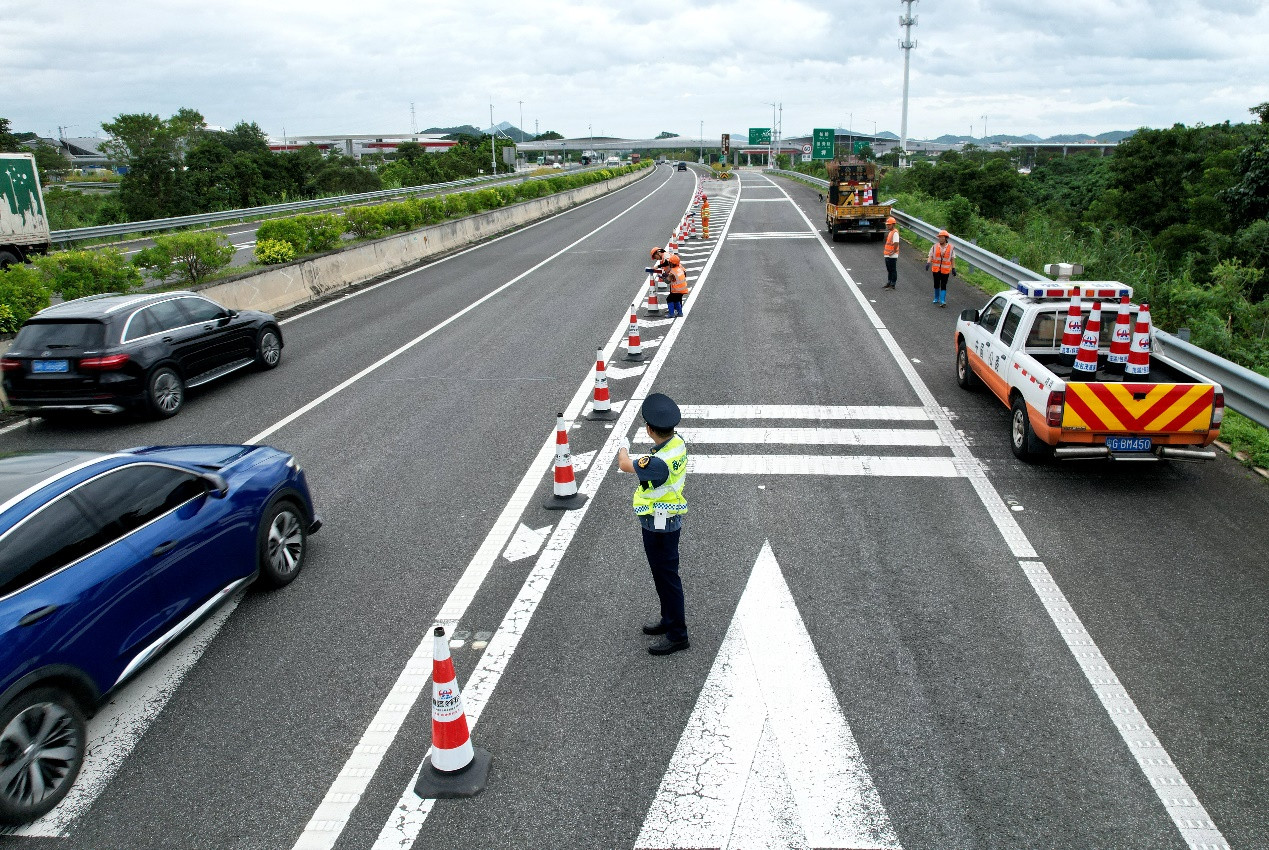高速路政、养护、交警等应急力量各司其职,多措并举做好柏桥服务区车流疏导分流工作