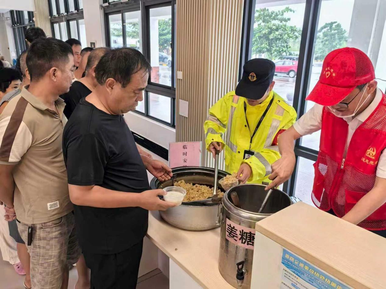 面对这一情况,渝湛、湛徐高速迅速启动应急预案,及时将滞留人员引导至服务区提前设置的应急安置点,供司乘休息避险。同时,“湛道”志愿服务队准备炒饭、馒头、饺子等热食以及泡面、八宝粥等便携食品,为滞留的司乘送上台风天里的暖心餐。