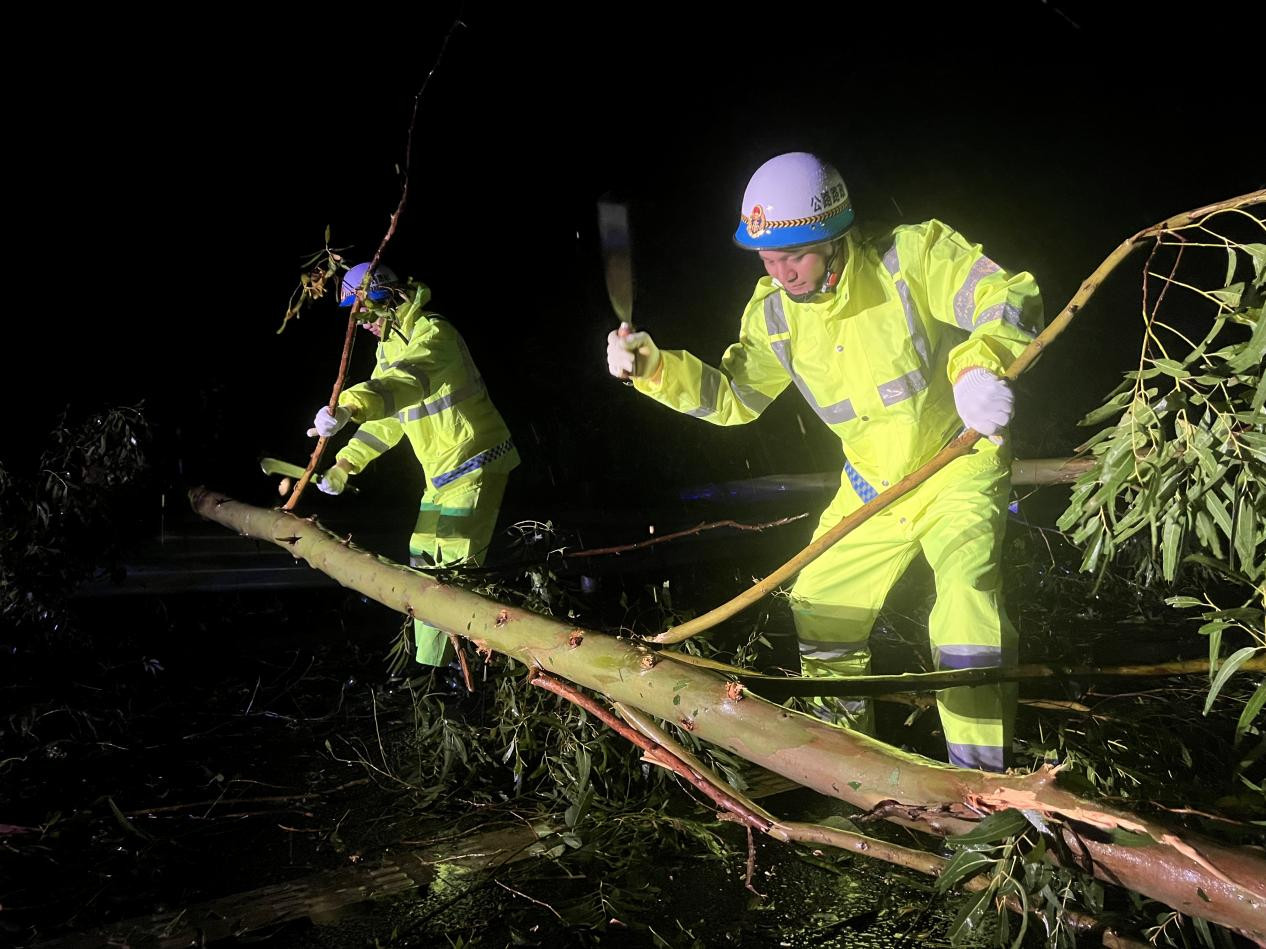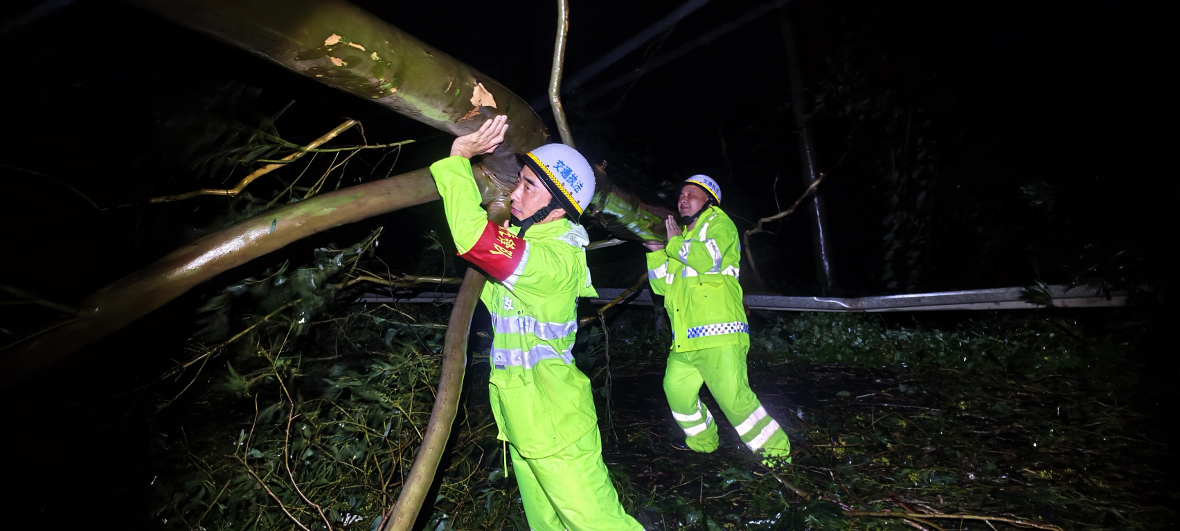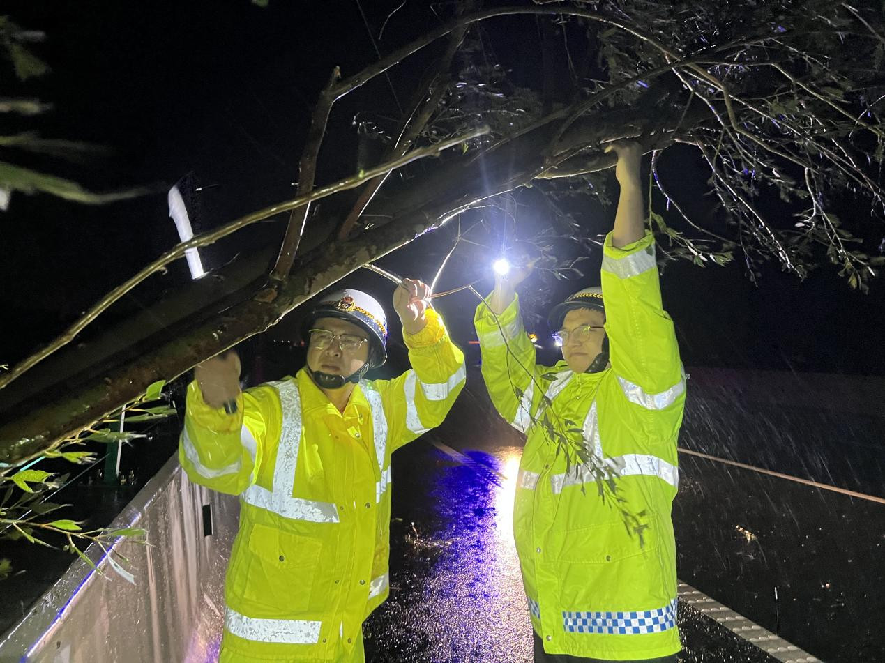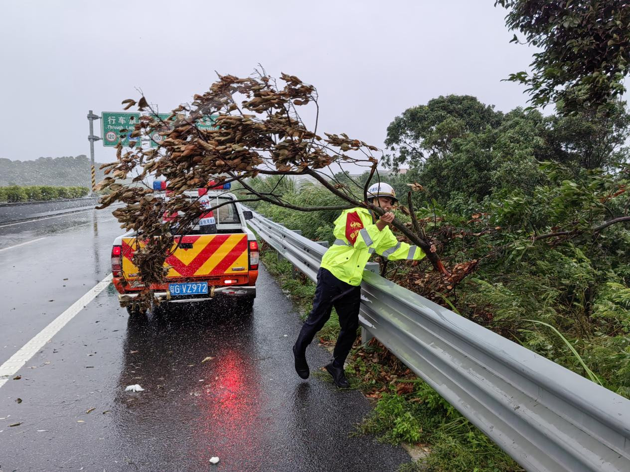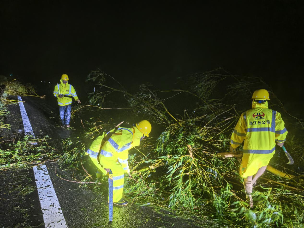 渝湛、湛徐高速抢险队员清理倒伏树木