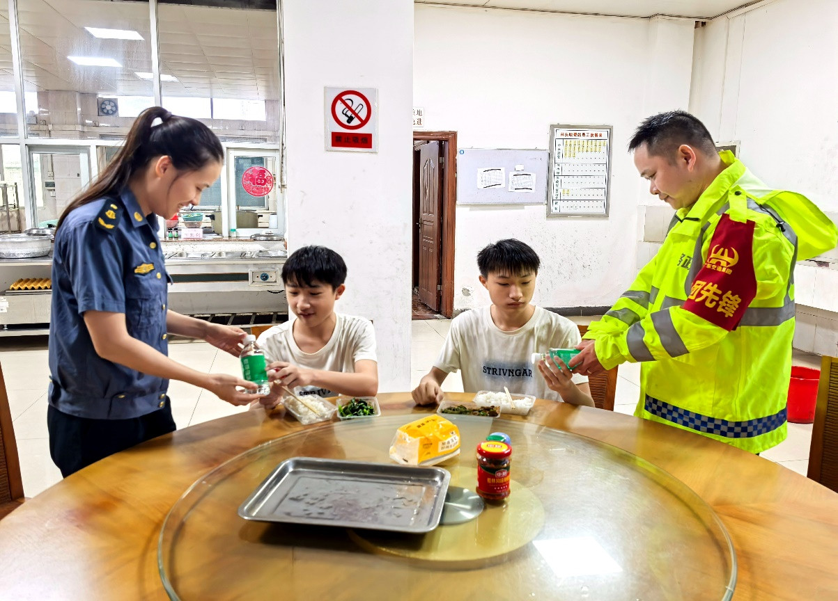 随后,两名小孩被路政人员护送到茂湛高速林头站区旅客服务点,为他们贴心提供午餐和饮用水,还安排临时休息区。在路政员的悉心照料下,两个孩子放下原来的拘谨与慌张,安心等候父亲来接自己。