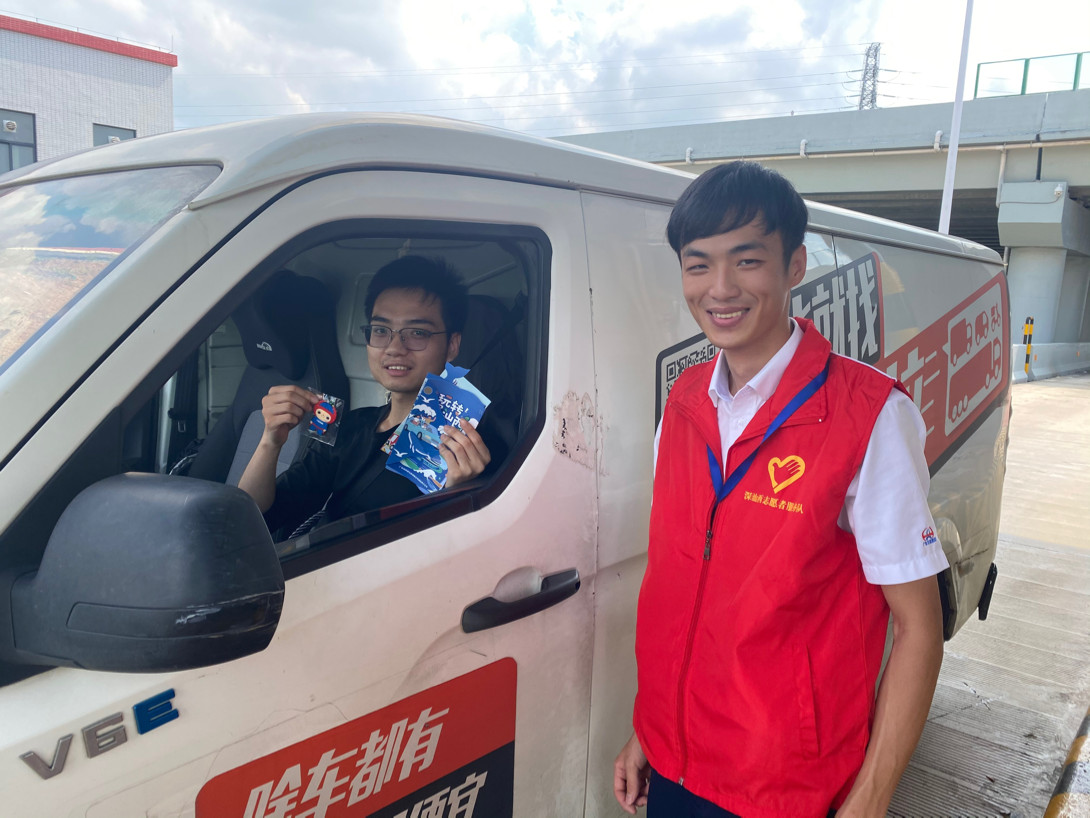 “路上车多,记得保持车距,别超速呀,愿您一路平安!”“长途开车注意休息,这份安全提示请收好,假期愉快!”……志愿者们还不忘当起“交通安全宣传员”,积极向司乘发放“安全提示”小册子,提醒大家文明出行、平安驾驶,共同营造舒适又安全的出行环境。