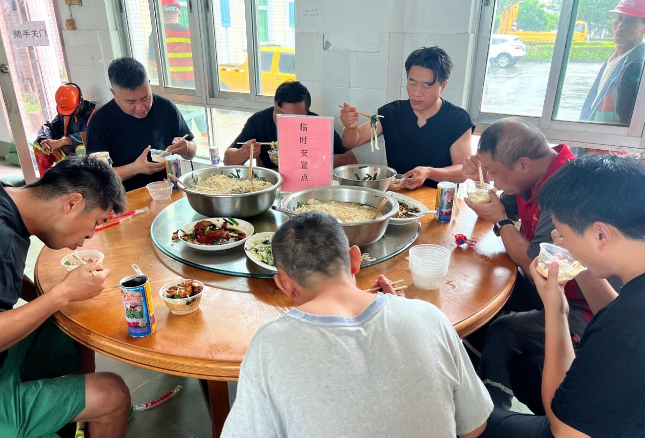 面对这种情况,浅水站站长何武迅速调整台风防御应急工作计划,组织团员、青年志愿者先引导所有滞留司乘人员前往站区设立的专属安置点,并为其派发矿泉水、八宝粥等应急物资。临近午餐时段,浅水站志愿者还准备了热腾腾的面条、米粥、小菜等食品送到每位司乘人员手中,以“交通人”朴实的温暖驱散台风天的飕飕凉意。
