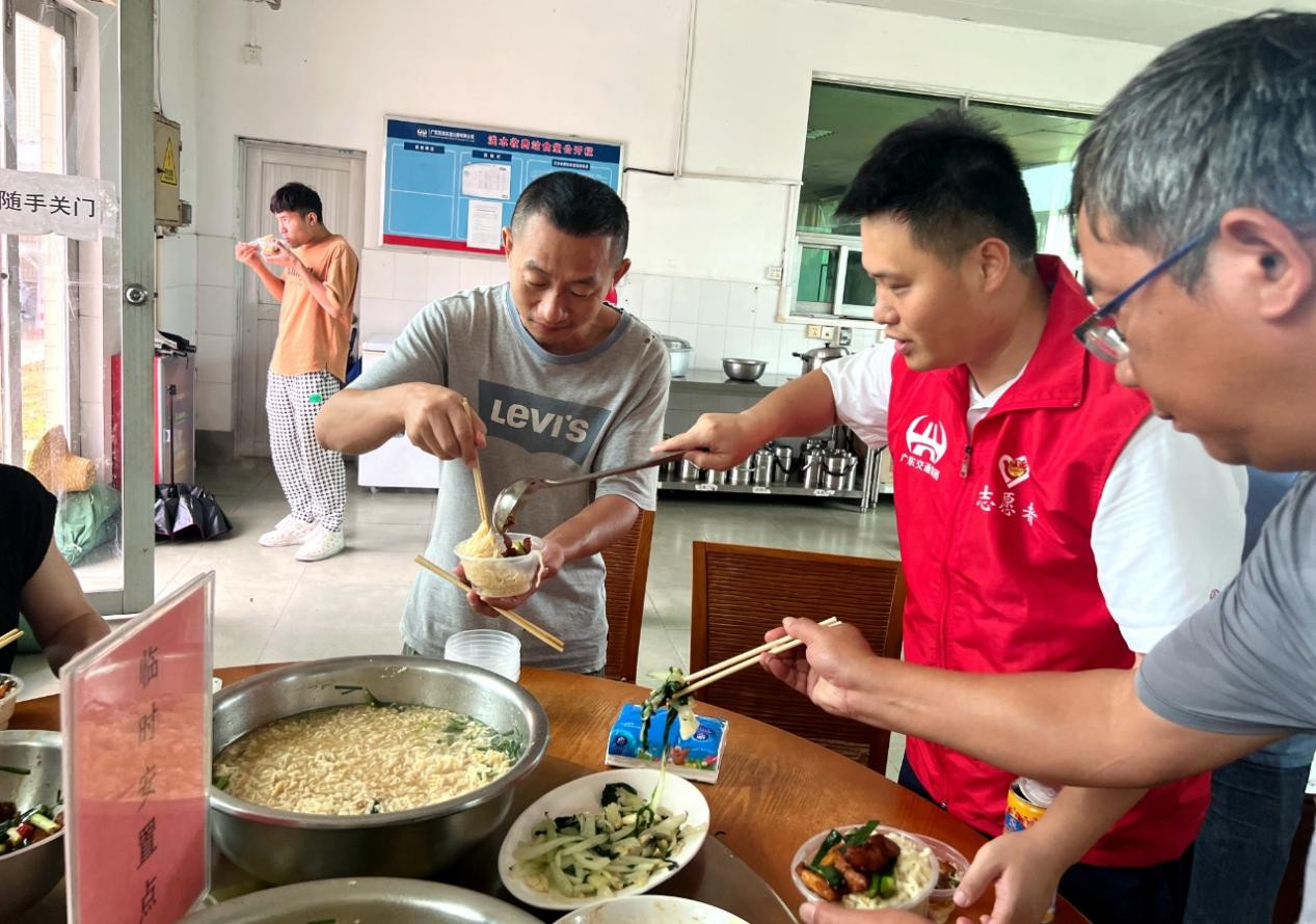 茂湛高速浅水站为台风天滞留司乘人员提供临时午餐