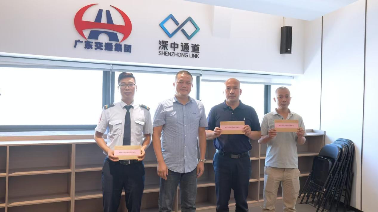 深中通道管理中心党委书记、副主任杨阳向三位司机致以1000元奖励金