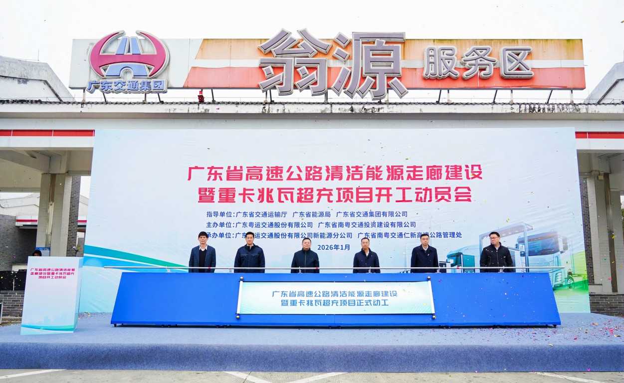 1月23日上午,广东省高速公路清洁能源走廊建设暨重卡兆瓦超充项目开工动员会在武深高速仁新段(以下简称仁新高速)翁源服务区举行。广东省交通运输厅、省能源局,广东电网、广东交通集团相关负责人参加活动。