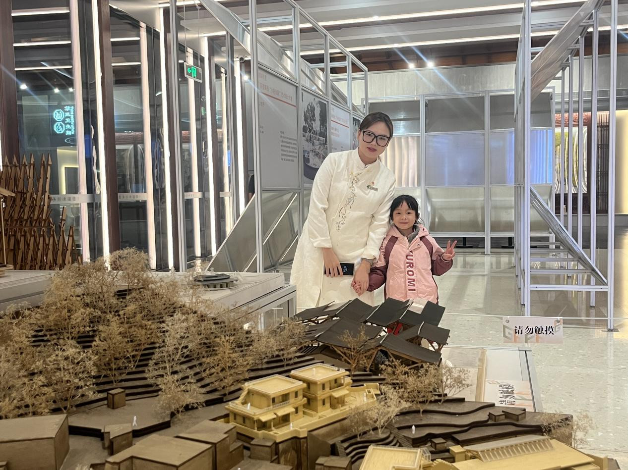 乐驿便利店展位工作人员为游客介绍当地特产