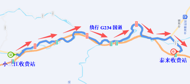 需行驶G55二广高速广州方向小三江至泰来路段的车辆,可由G55二广高速小三江站下高速,绕行G234国道(泰来方向),经泰来站驶入G55二广高速南行(广州方向)。