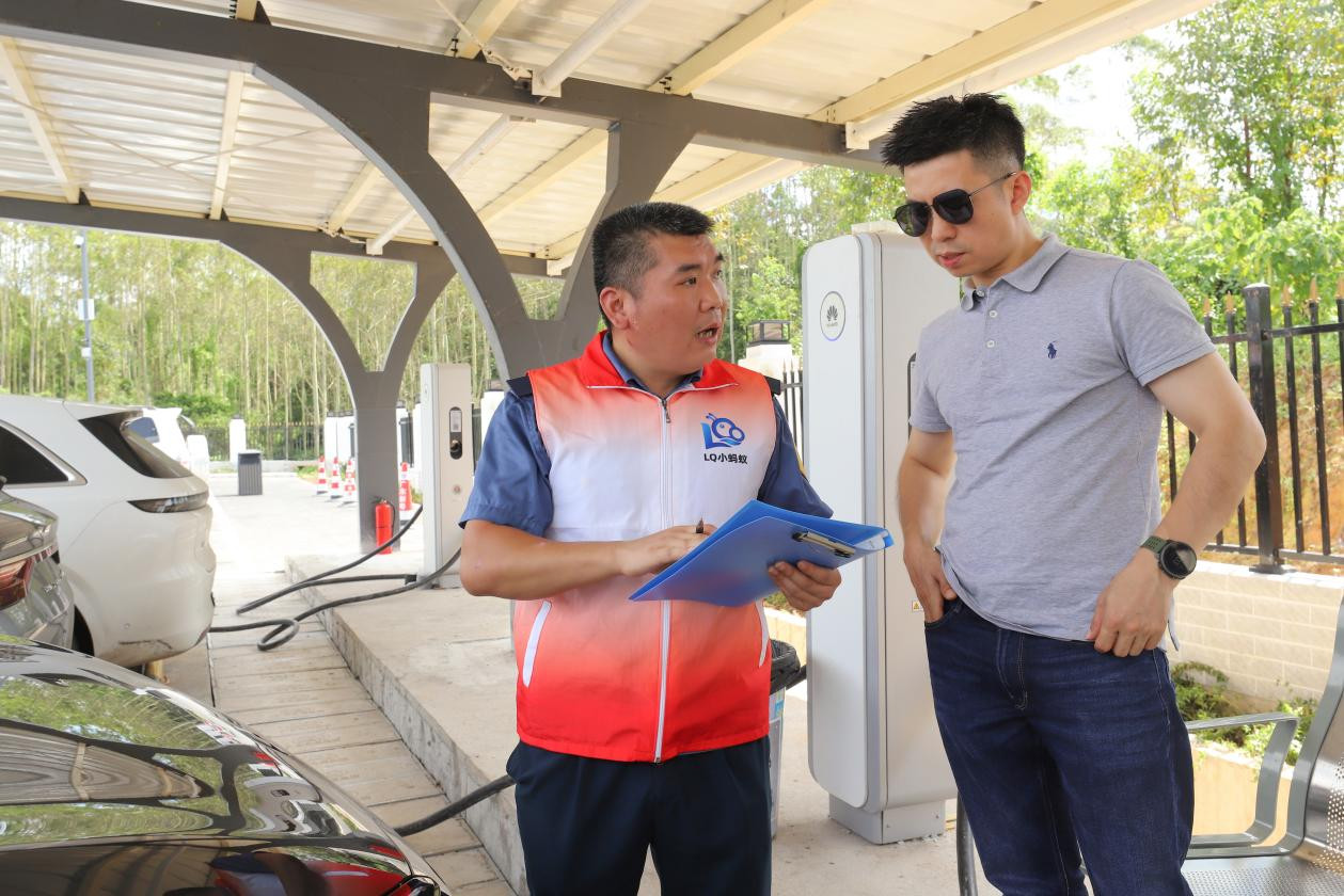 刚吃完午饭的宁志强收到消息,一边协调人员支援,一边往现场赶。2分钟后,他已经接过登记本,熟练地登记排队充电车辆信息、联系车主、引导入场。