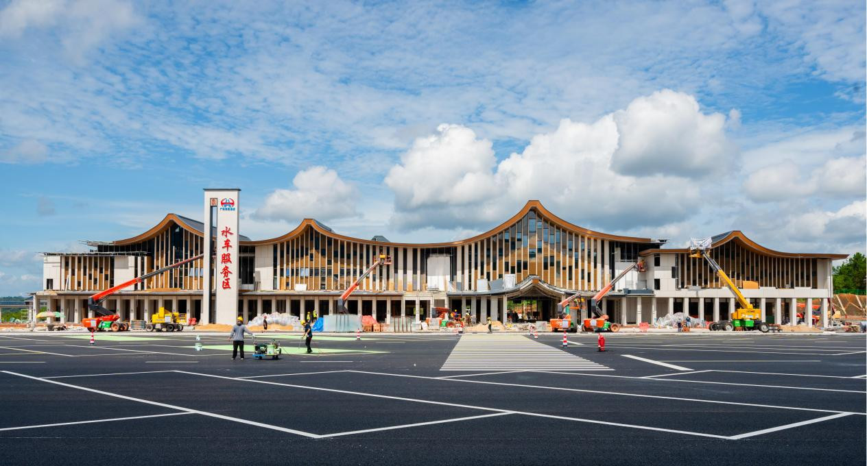 在水车站往梅州方向约4公里处,与水车站同属新增建设的水车服务区正紧锣密鼓地进行收尾阶段施工,有望于国庆前投入使用。届时,水车服务区将与水车站形成“进得来、出得去、留得住、带得走”的协同发展模式。服务区还将开放“后门”,与地方联手助力“百千万工程”,为本地农产品设立展销专区,旅客下车即可购买梅州金柚、盐焗鸡等特产,实现“高速+消费”的良性闭环。