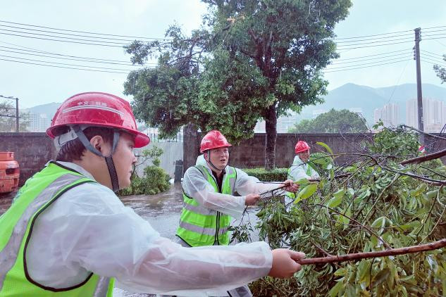 台风“桦加沙”过境深圳大鹏新区,给当地交通与市民日常生活带来不同程度影响。风雨尚未完全停歇,中交二航局深惠城际大鹏支线五工区项目员工便迅速响应,化身“城市恢复者”,冒雨投身灾后恢复工作,以高效协作的实干姿态,助力城市快速回归正常运转。
