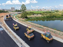 国庆期间,广东交通集团所属广韶高速改扩建项目(南段)施工现场机械轰鸣、焊光闪烁,车辆往来穿梭。