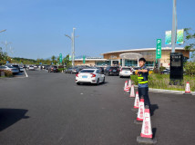 9月28日16时,随着急促呼喊声,只见驻点区内的高速路政专班成员通过手上对讲机,第一时间报告现场情况并发出指令,立即启动服务区交通疏导应急预案。