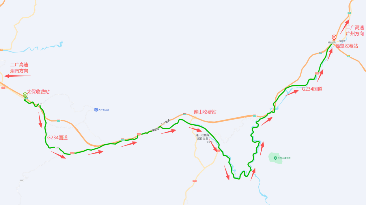 因施工需要,二广高速将对广州方向太保站至连山站高速主线、太保站往广州方向匝道实施全封闭施工。