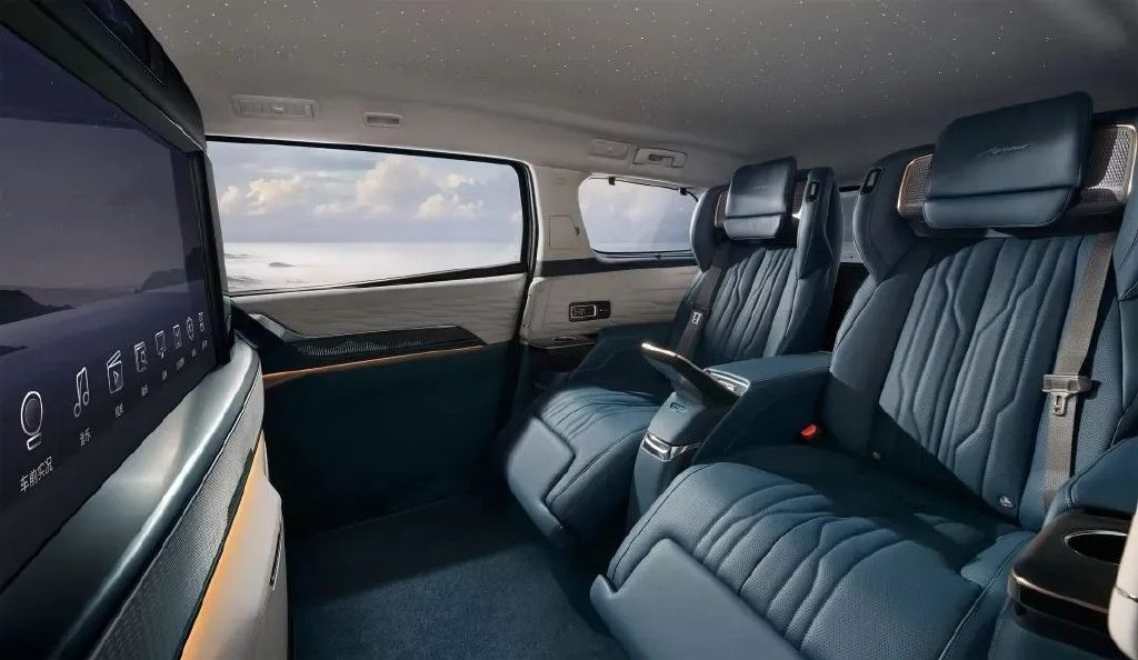 第二排采用高级Nappa真皮宇航座椅,提供近享、休憩、入眠、三排便捷上/下车等7项座椅联动模式,第三排也是独立座椅布局,当第三排座椅移动到最前位置时,后备箱容量空间可达1850升。