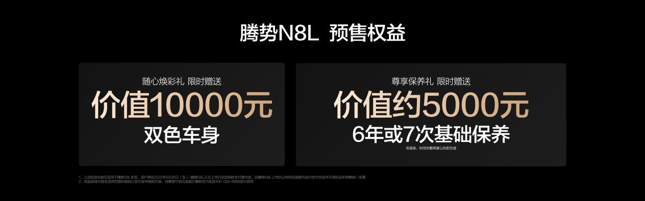 大六座安全豪华SUV腾势N8L正式开启预售,预售价31.98万起