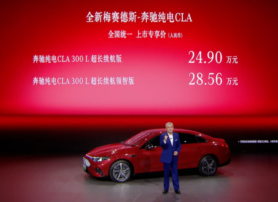 纯电CLA 300 L超长续航版、纯电CLA 300 L超长续航领智版、纯电CLA 300 L超长续航冠军限量版(100台限量发售)等3款车型,全国统一的上市专享价分别为24.9万元至29.99万元。奔驰同步宣布与世界冠军、国乒新一代领军人物王楚钦合作,不只是担任品牌代表,更成为梅赛德斯-奔驰星愿基金的首位“公益伙伴”。