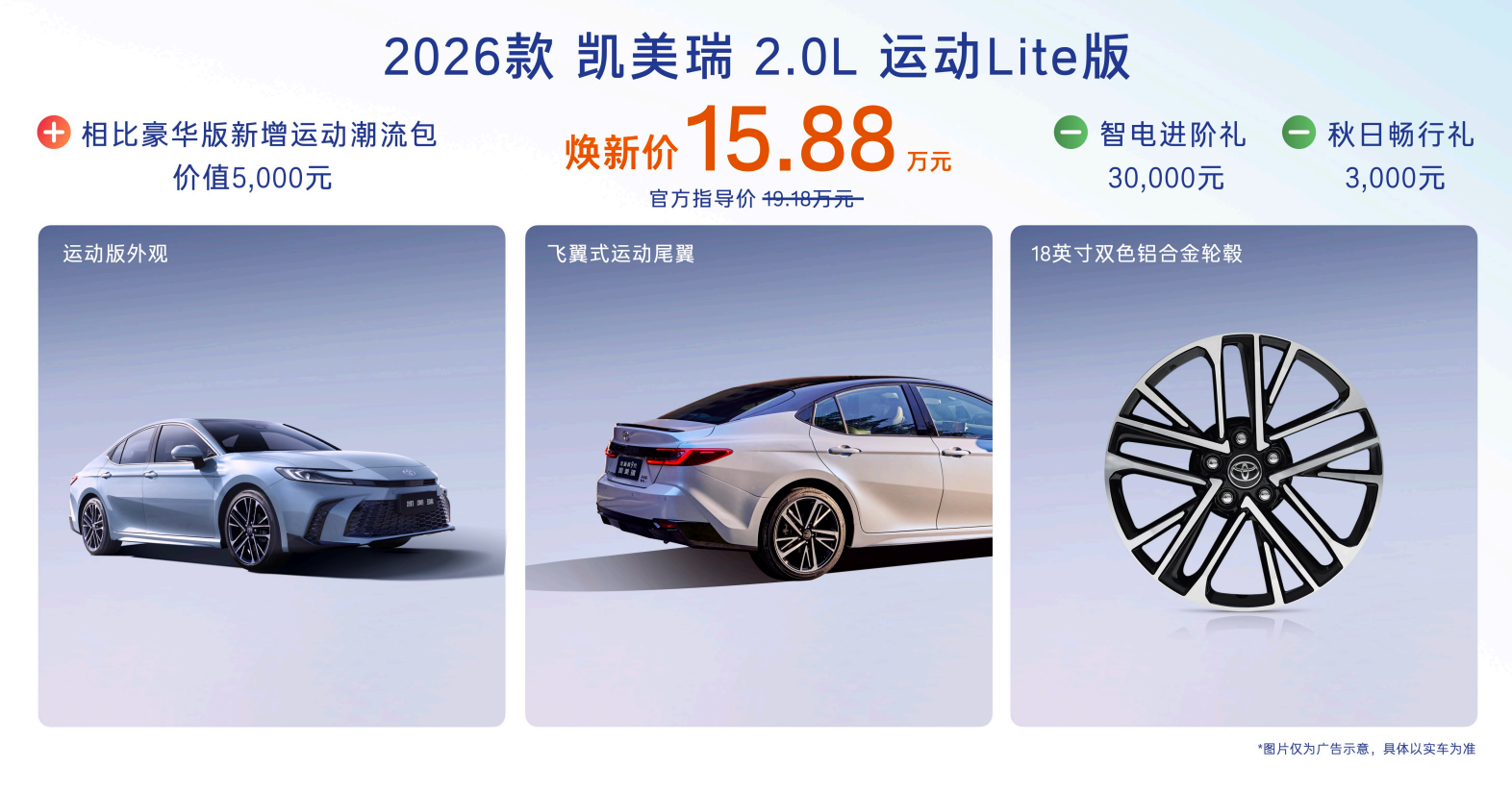 凯美瑞坚持“增配不增价”。全球运动版造型全面下放,全新推出2.0HSE运动LITE版,焕新价15.88万元起。2.0HV尊贵版新增白色内饰,并将PVM全景监控系统、蓝牙钥匙及律动氛围包下放至该版本及以上车型。2.5HEV车型的PKSB泊车辅助制动系统能力升级,可识别物体+车辆+行人,实现前向、后向主动安全防范全覆盖。