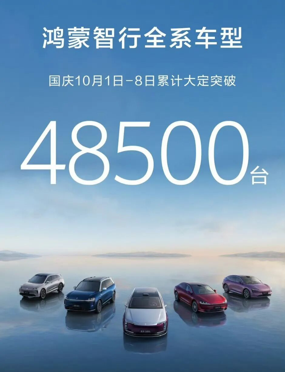 2025年国庆黄金周,鸿蒙智行以一份惊艳的成绩单再次证明其市场号召力——10月1日至8日,全系车型大定订单突破48500辆。这一数据延续了其9月交付52916辆的强劲势头,累计交付量已逼近95万辆。