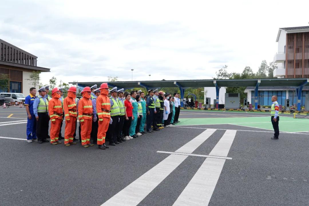 此次演练由粤运交通主办,粤运交通珠三角分公司承办,乐驿商贸、商业发展公司协办,路桥公司广贺分公司、肇庆市交管支队高二大队二中队、四会市黄田镇政府专职消防队、四会市黄田镇卫生院等单位共同开展,通过突发事件应急处置检验多方协同作战能力,筑牢消防安全防线。