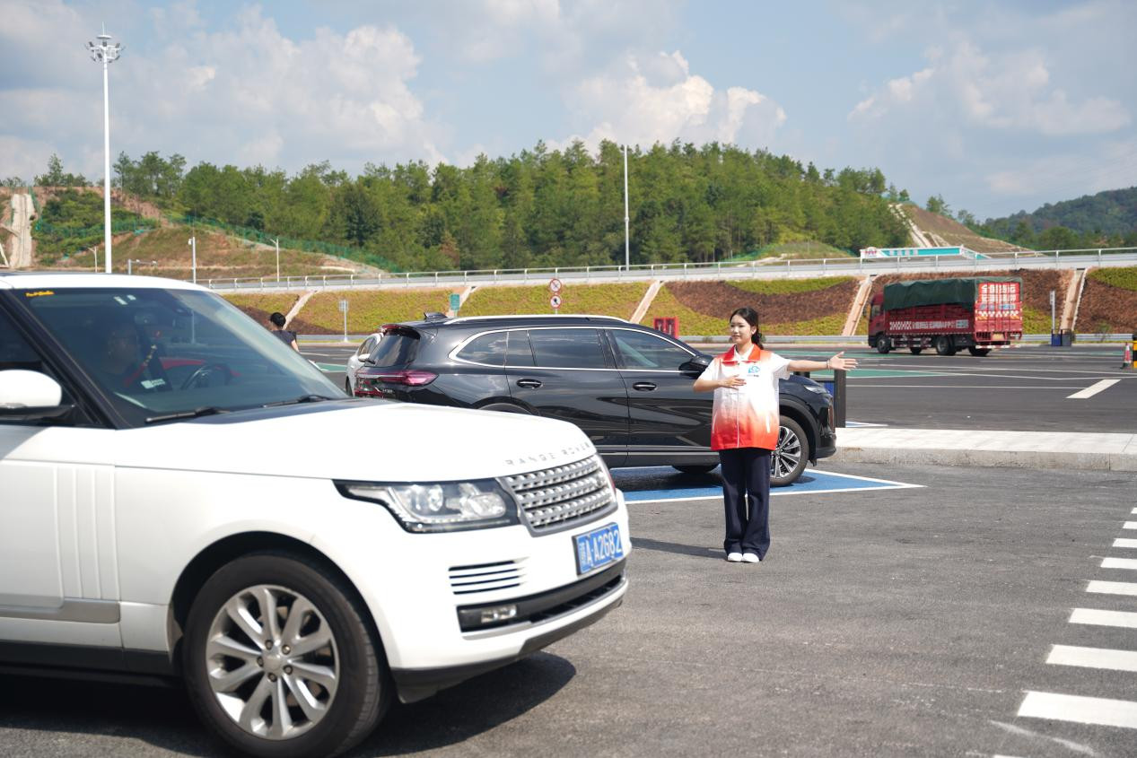 此外,服务区内规划了483个停车位,其中包括46个新能源充电车位和8个残疾人专用车位,充分满足各类车辆的停靠需求。现场还有10名志愿者在各点位提供引导与咨询,确保司乘人员“出行无忧”。