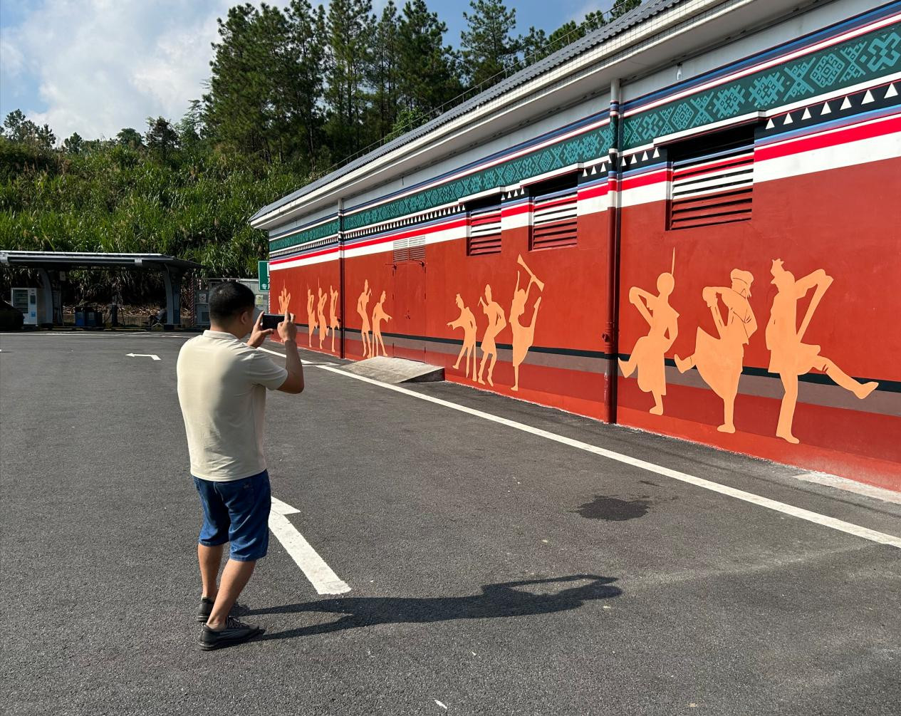 “之前来没看到有墙绘,红墙加上民族舞的剪影,很适合拍照打卡。”广州方向青龙停车区内,一面绘有瑶族长鼓舞图案的红墙吸引了过往司乘人员的目光。