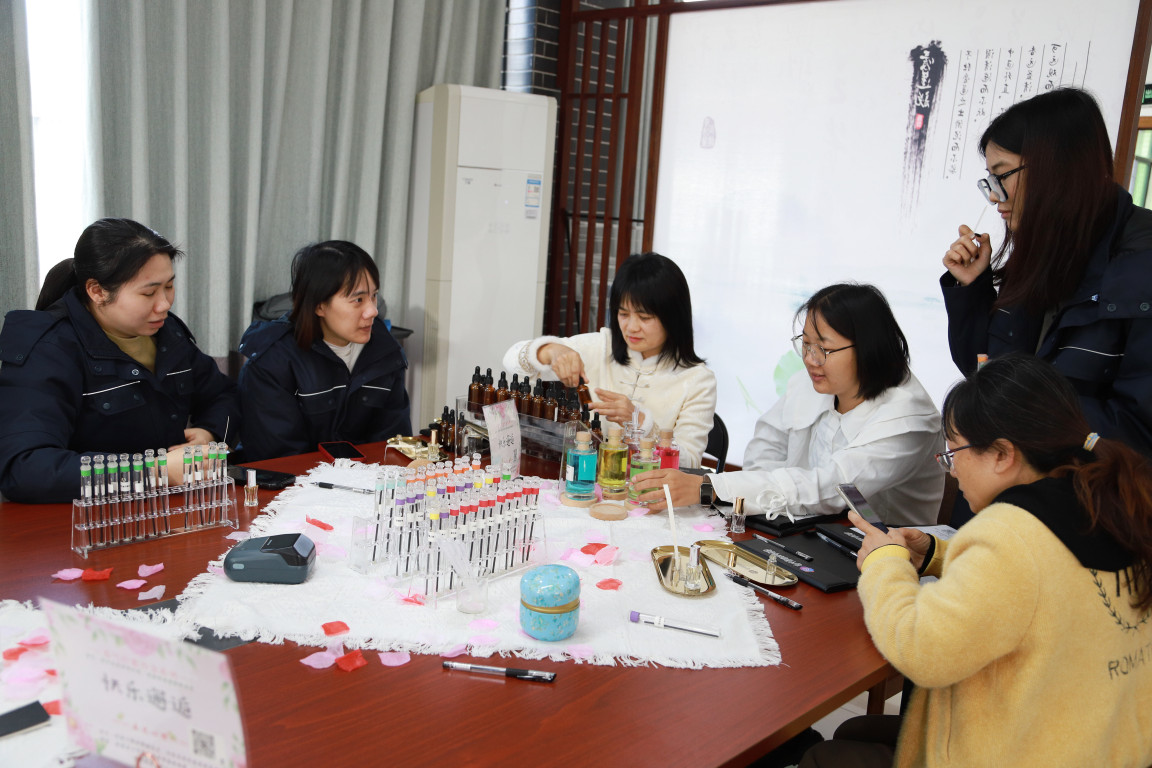 一小时后,每人都调出了专属于自己的味道,轻轻一喷,无压力的互动让“同事”升级为“队友”,也让她们解锁了“闻香识情绪、调香愈身心”的新技能。