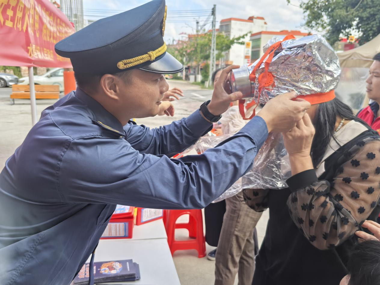 活动现场,华陆高速“小蚂蚁”志愿者化身宣传员,将一张张印刷着消防安全知识的宣传单张派发到民众手中,同时,不少当地员工还用方言为老人耐心讲解秋冬季节防火知识和家庭火灾常见诱因。而一旁的消防器材体验区,志愿者们“手把手”指导民众如何正确使用过滤式消防自救呼吸器、干粉式灭火器等基本消防器材。此外,本次消防宣传活动还设置了“模拟厨房灭火”实操体验,让民众能够实际体验、操作灭火器扑灭着火源,将消防安全“防火墙”在民众心中筑牢。