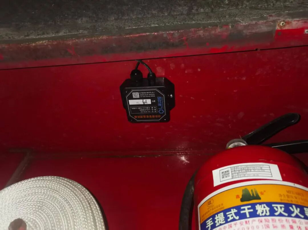 在消防箱安装的柜门传感器(摄影:刘国斌)