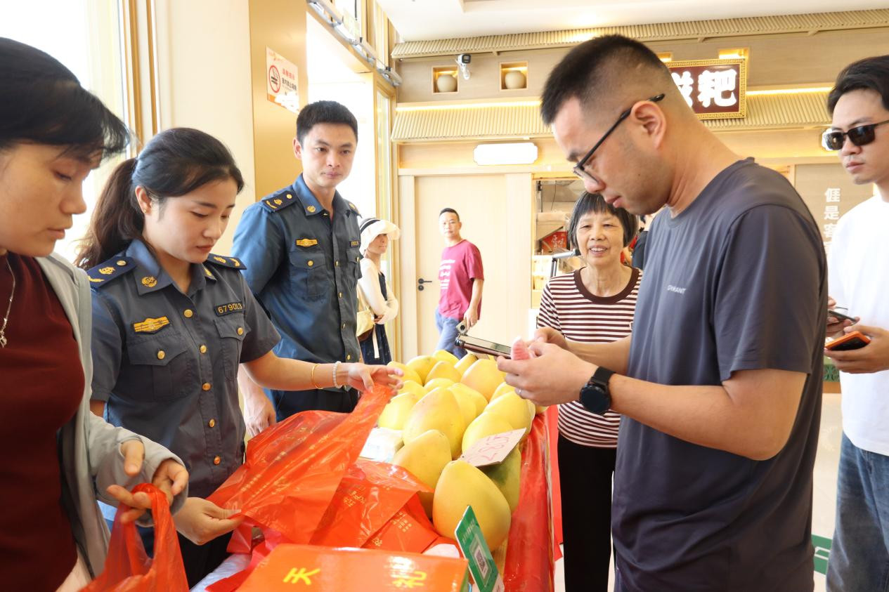 歌声未落,“特色助农专柜”前已然排起小长队。本次志愿服务活动,兴华高速专门成立助农小组,提前对接当地种植户,将新鲜应季的农产品搬进服务区进行展销。“先生,这个柚子是今天早上刚从果园摘下来的,又甜又新鲜。”面对询问的司乘,志愿者小饶热情地介绍着展台上的当地农产品。志愿者们主动帮着称重、打包,不少司乘纷纷驻足购买,既为本地农产品拓宽了销售渠道,也实现了“服务司乘”与“助力乡村”的双向奔赴。
