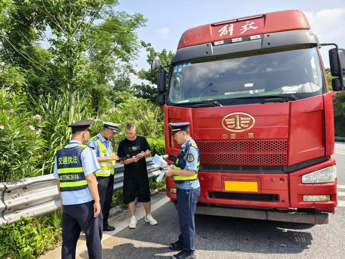 近日,广佛肇高速联合封开县交通综合执法部门、高速交警,通过现场普法宣传与拦截超限超载车辆相结合的方式,严厉整治超限超载运输行为,从源头筑牢道路交通安全防线。