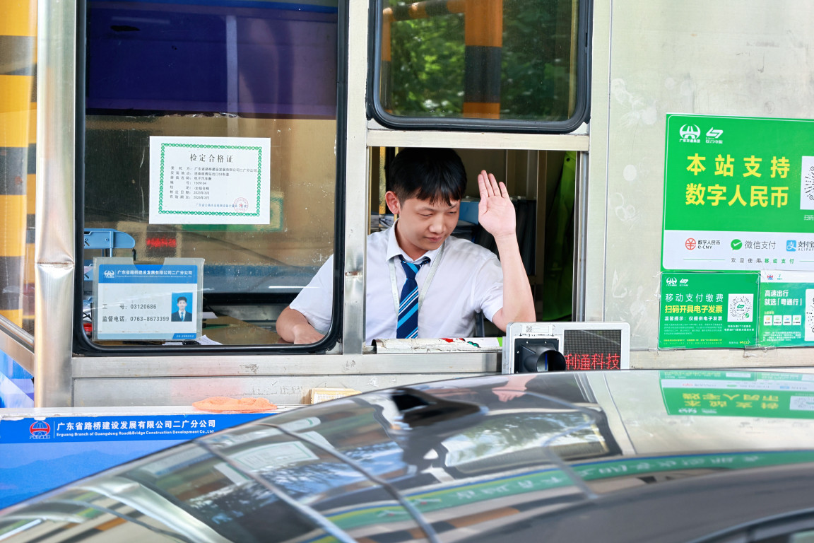 “请问有什么可以帮到您?”连南站岗亭里,“00后”收费员欧阳嘉君面对成倍增长的车流和各类咨询,高效处理特情、耐心解答司乘的疑问。同时,仔细分辨车辆,发放通行卡。