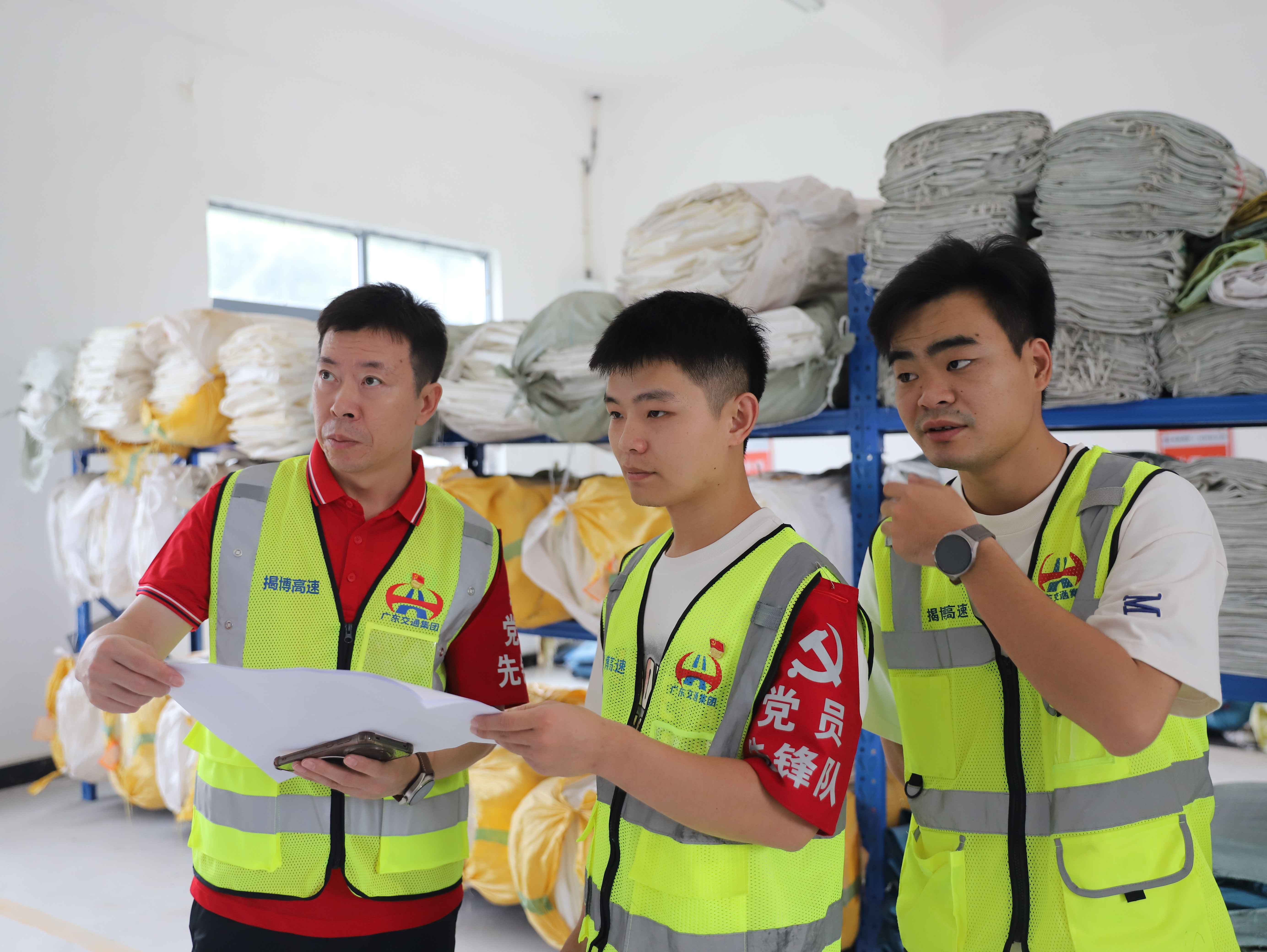 揭博高速工作人员在清点应急物质(摄影:高天赐)